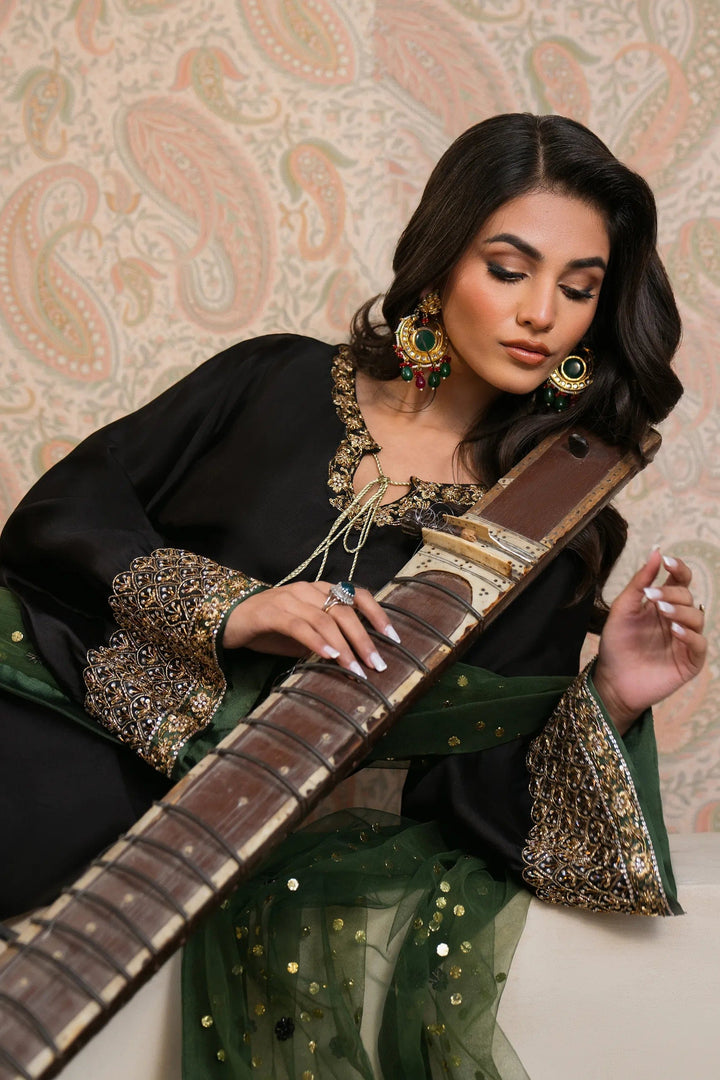 Amaya is where delicacy meets devotion — crafted in soft sheesha silk and paired with a dreamy Mukesh net dupatta. Intricate embroidery, metallic accents, and glimmering crystals ripple gently across the surface, while tassel detailing lends an air of celebration. Effortlessly fluid and timelessly feminine, Amaya is for the woman who carries elegance like a whisper of light.