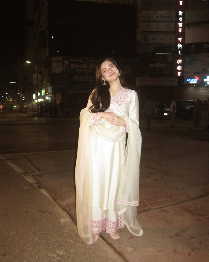 Radiating sophistication, Aviva is crafted from opulent silk in a delicate vanilla hue. The shirt and culottes feature delicately worked embroidery in a vividly contrasting pink tone. The embroidered cotton net dupatta adds the perfect finishing touch, elevating your presence at every occasion.
