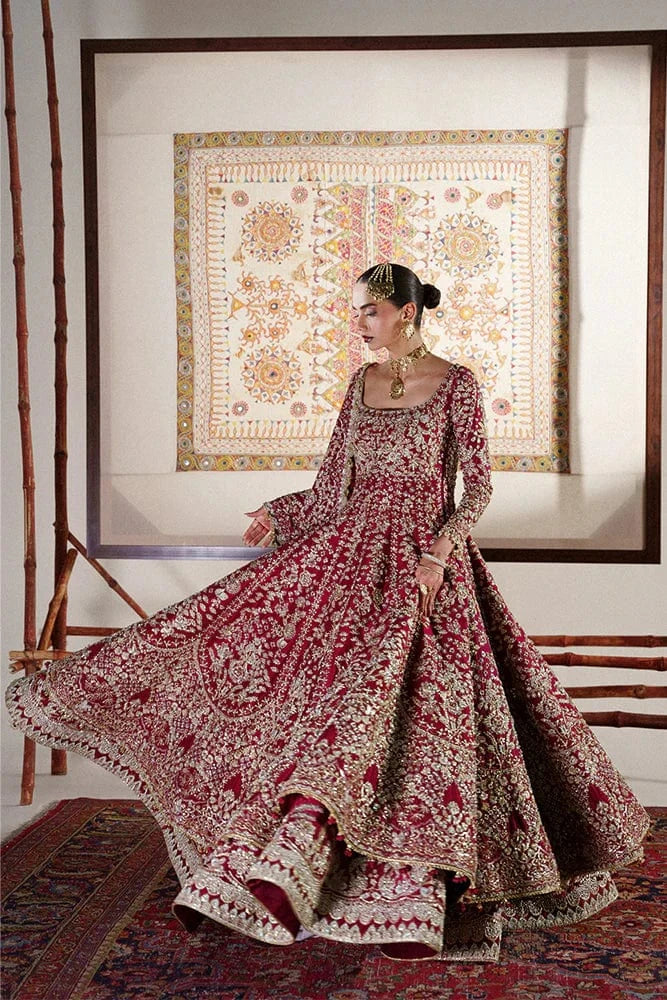 - RAW SILK PISHWAS WITH ALL-OVER TILLA EMBROIDERY IN GOLD-SILVER WITH GREEN ACCENTS AND TASSEL FINISHING