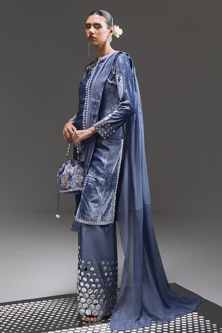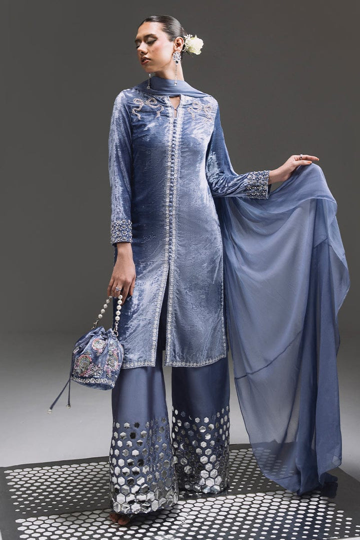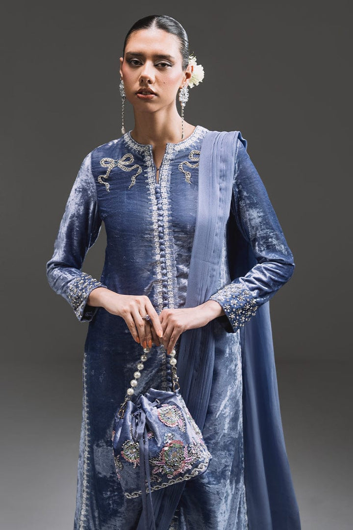 Fabric: Shirt (Velvet), Trouser (Tissue Silk), Dupatta (Chiffon)