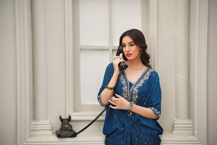 ROYAL BLUE SHEESHA SILK KAFTAN
