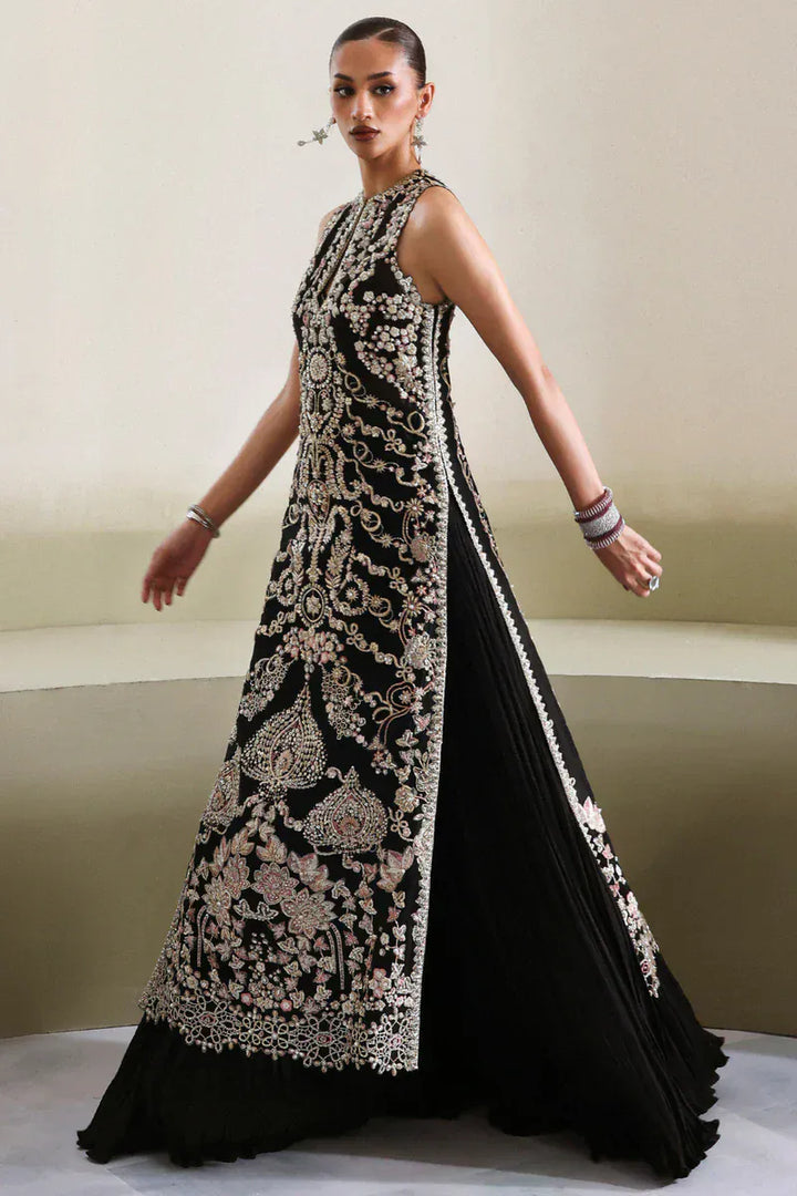 It took time, countless trials, and endless conversations until every detail aligned with the vision we held from the very beginning to create a black ensemble that redefines timeless elegance. The long, fluid silhouette moves with quiet power, adorned with intricate handwork that shimmers only when it chooses to be seen.