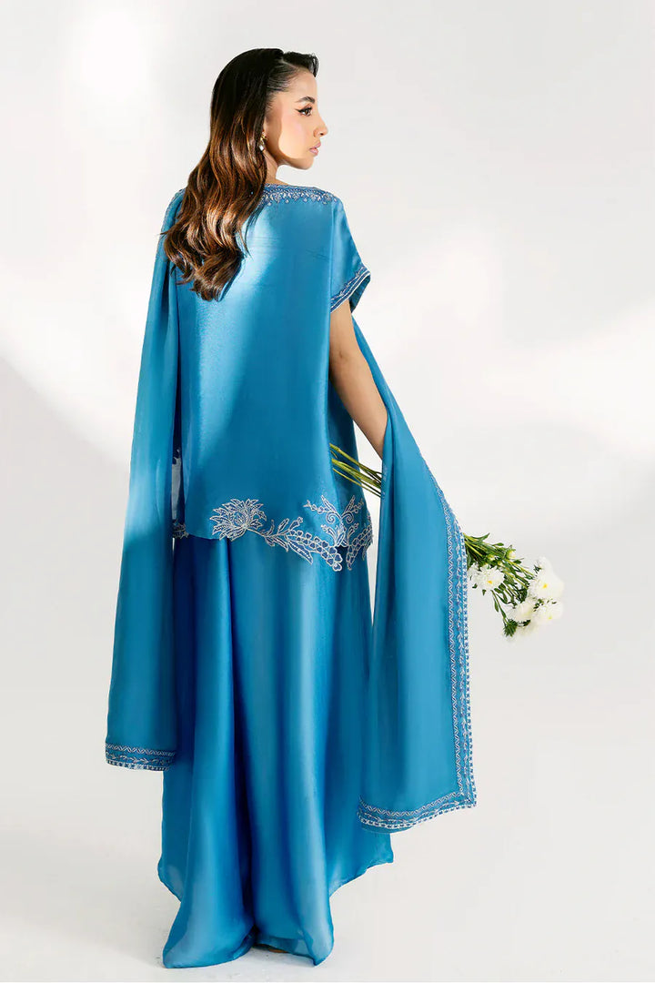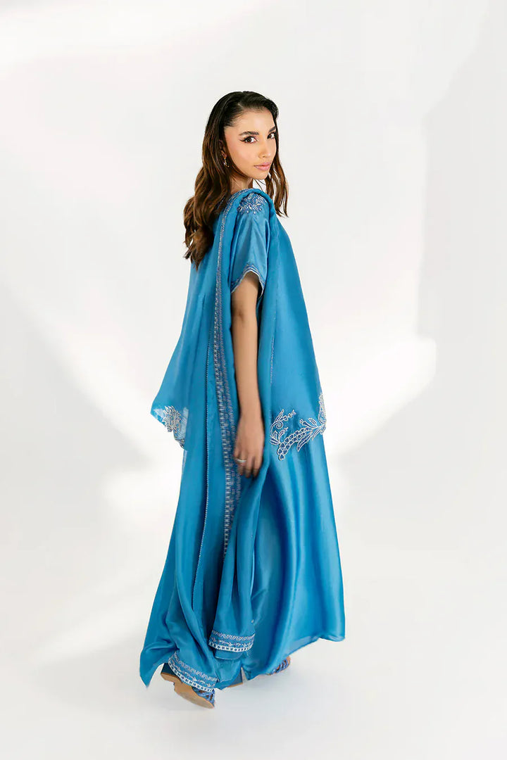 The ensemble is crafted from luxurious tissue silk, brought to life with intricateĀ reshamĀ embroidery that adds texture and elegance. Paired with a beautifully detailed silk embroidered dupatta, the look exudes timeless grace and refined sophistication.