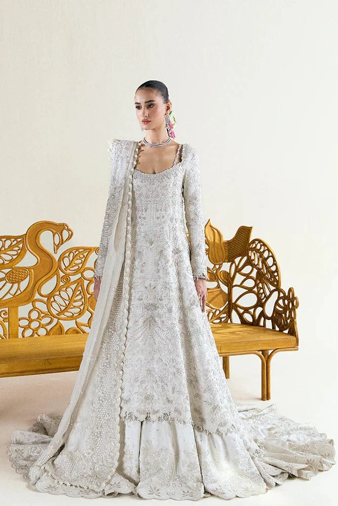 - TISSUE SILK LEHENGA WITH SCALLOPED, EMBELLISHED BORDER AND EXTENDED TAIL