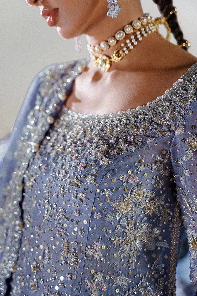 - MATCHING ORGANZA DUPATTA WITH FLORAL SPRAY AND PEARL-ENHANCED CORNERS